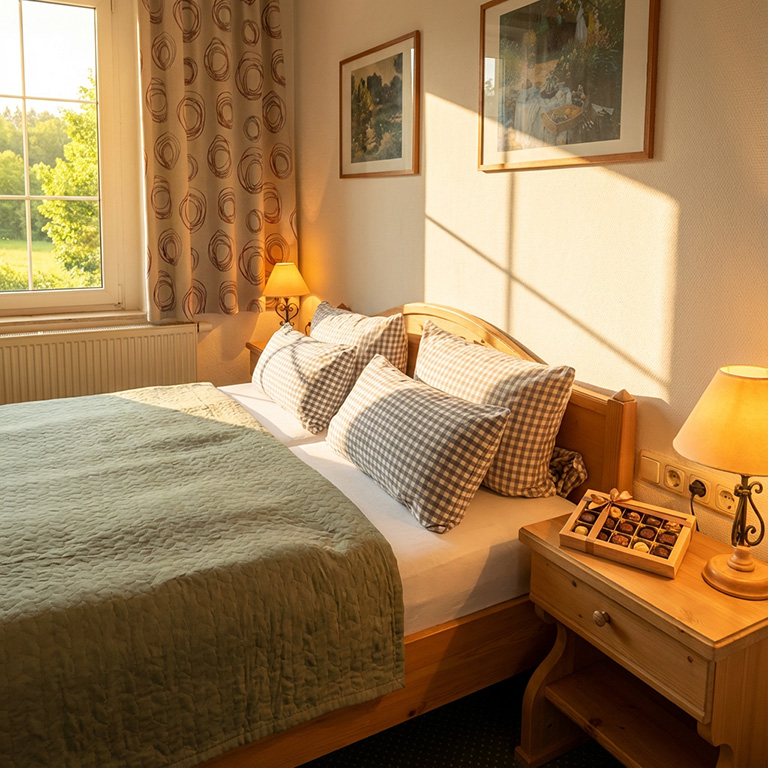 Unsere 15 individuell gestalteten Zimmer (Einzel- und Doppelzimmer) sind mehr als nur ein Schlafplatz. Sie sind Ihr Ankerpunkt im Muldental. Wählen Sie unsere Kategorie ‚SCHLOSSBLICK‘ und lassen Sie sich morgens von der Sonne über den Zinnen der Rochsburg wecken. Ausgestattet mit ANNEHMLICHEN Komfort und dem Charme eines familiengeführten Hauses.“