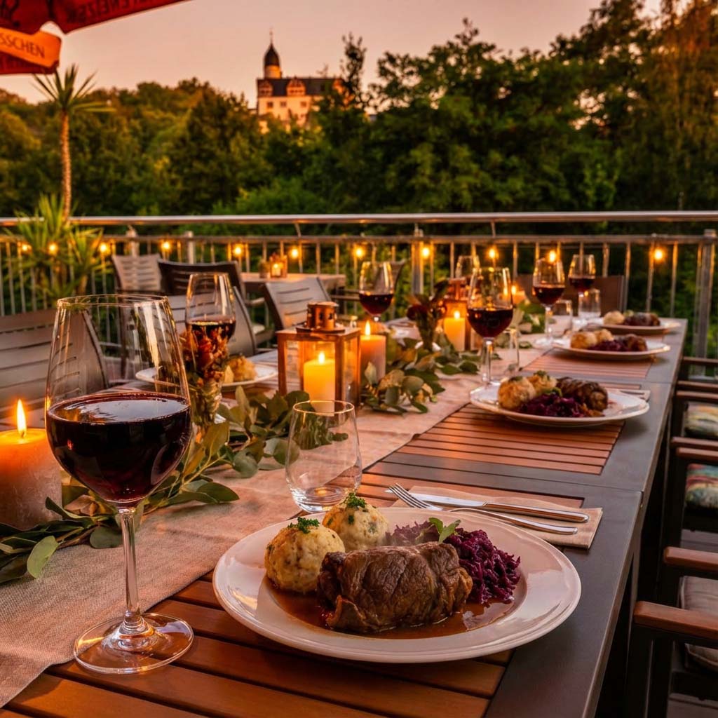 Unsere Sonnenterrasse gilt als einer der schönsten Plätze im Muldental. Ob zum ausgedehnten Frühstück, zum Sonntagsbraten oder für Ihre Traumhochzeit mit bis zu 110 Gästen: Wir kreieren Momente, die bleiben. Unsere Küche setzt auf regionale Frische und sächsische Herzlichkeit.
